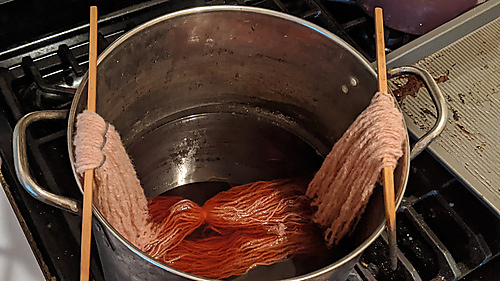 I tried some eco-printing this weekend, and I think I'll make a few changes for the next time. I didn't boil it for very long, and I could have let it steep for longer as well.